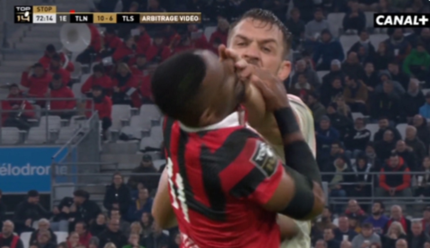 C’est pour un geste de brutalité sur l’ailier Toulonnais Jiuta Wainiqolo que le Toulousain Rynhardt Elstadt a été exclu de la rencontre.