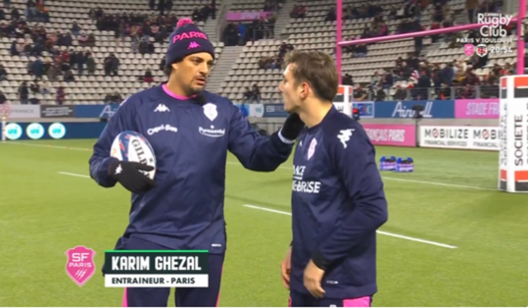 🎙️ Au plus près des joueurs pendant l'échauffement du @SFParisRugby avec les consignes de Karim Ghezal !