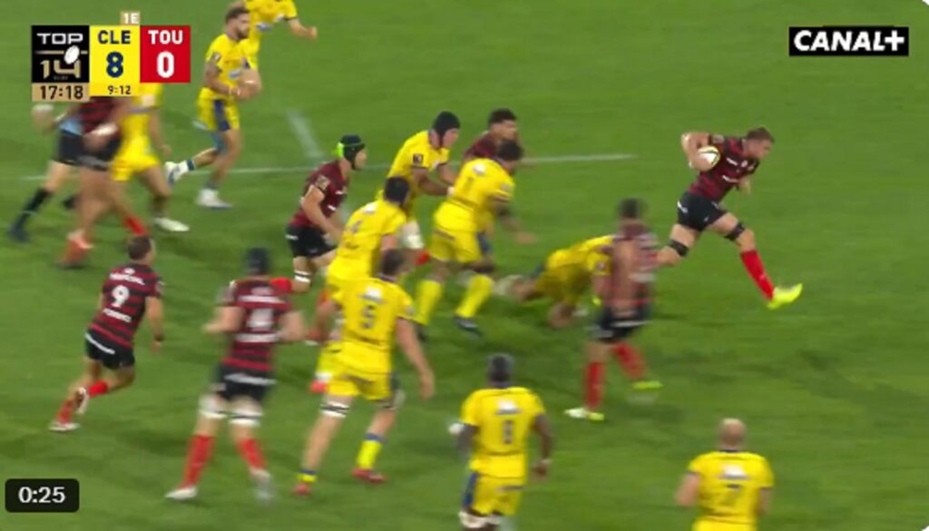 L’international tricolore a réalisé une percée impressionnante dans la défense adverse, offrant ainsi à Paul Graou, son demi-de-mêlée, l’opportunité d’inscrire un essai déterminant.