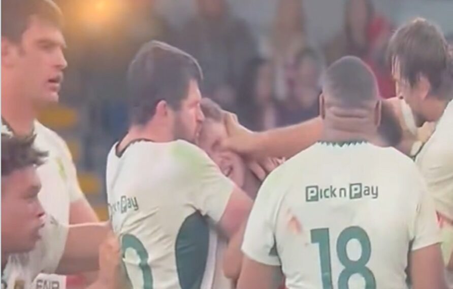 Sur une échauffourée sans enjeu, le deuxième-ligne sud-africain a commis une fourchette très nette sur Alex Mann. L’arbitre français Luc Ramos n’a pas hésité une seconde : carton rouge direct. Le géant des Boks quitte donc le terrain pour un geste qui n’avait absolument aucun sens dans ce contexte, alors que son équipe menait déjà 73-0.