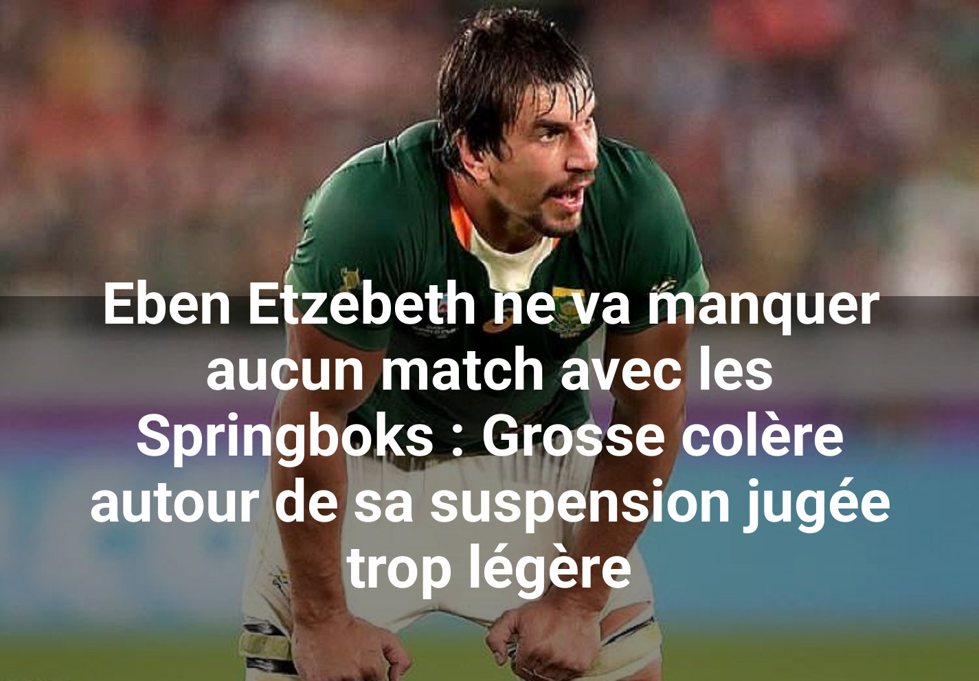 Le 29 novembre dernier, lors d’un match remporté par les Springboks face au Pays de Galles à Cardiff, Etzebeth écopait d’un carton rouge pour un geste très dangereux sur Alex Mann. Une commission indépendante confirmait ensuite une suspension de 12 semaines. Problème : cette sanction ne s’applique qu’aux rencontres de clubs. Le double champion du monde ne manquera donc aucune rencontre internationale et sera de nouveau éligible dès le 28 mars 2026.