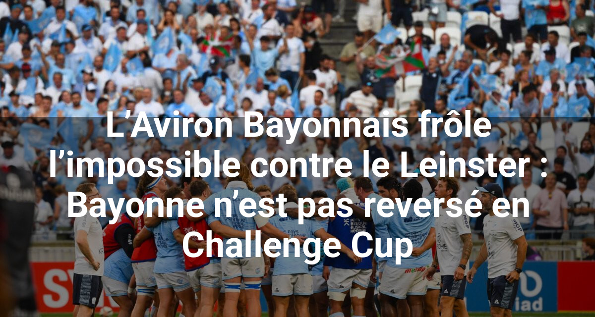 Les Bayonnais ont tenu tête pendant une grande partie du match, mettant à mal la hiérarchie et faisant vaciller une équipe du Leinster venue pour s’imposer. Pourtant, malgré un engagement sans faille, les Ciel et Blanc ont manqué de précision aux moments décisifs pour inverser la tendance.