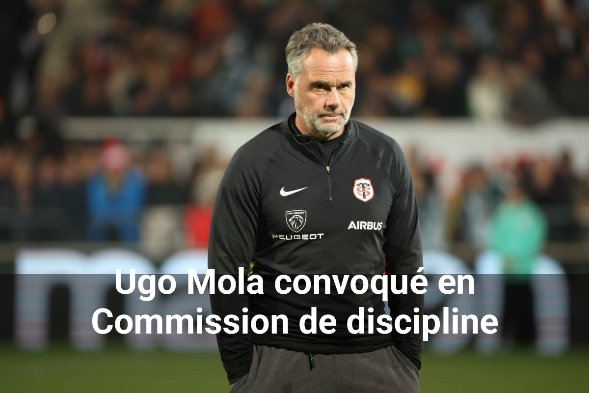 « A l’issue de la rencontre susvisée, l’arbitre n°4 désigné lors de cette rencontre a signalé le comportement de M. Ugo MOLA, Entraineur du Stade Toulousain. La situation visée est susceptible de constituer une infraction aux Règlements Généraux de la LNR et de la FFR. M. Ugo MOLA et le club du Stade Toulousain sont convoqués devant la Commission de discipline et des règlements en sa séance du 4 février 2026. M. Ugo MOLA n’est pas suspendu dans l’attente de cette audience. »
