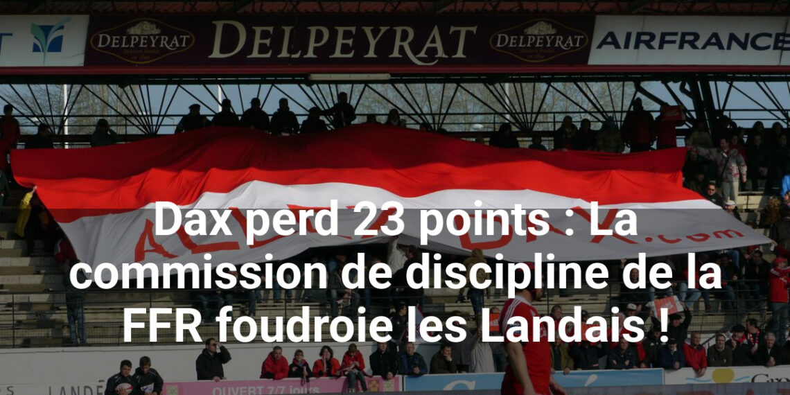 L’US Dax traverse une crise grave. Après un premier retrait de 14 points, le club landais a essuyé une nouvelle sanction de la commission de discipline de la FFR, avec un supplément de 10 points en moins dont 3 avec sursis. En tenant compte de la révocation de 2 points de sursis, ce sont finalement 9 points fermes qui viennent s’ajouter, portant le total des points retirés cette saison à 23, comme le révèle Midi Olympique.