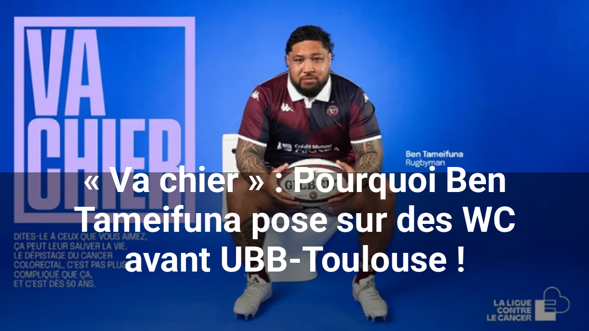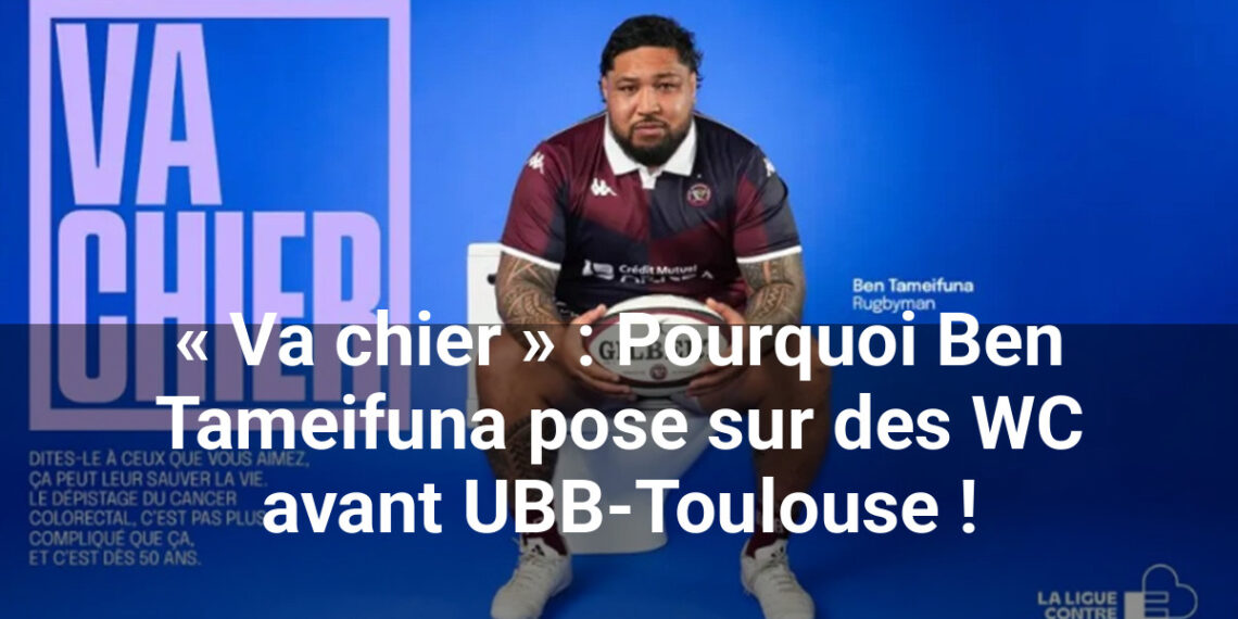 Le colosse tongien Ben Tameifuna s’est prêté à une mise en scène surprenante qui fera rapidement le tour des réseaux sociaux : il pose sur une cuvette de WC, ballon de rugby à la main. Derrière cette image insolite, l’objectif est clair : relayer le message percutant de la Ligue contre le cancer, « Va chier ».